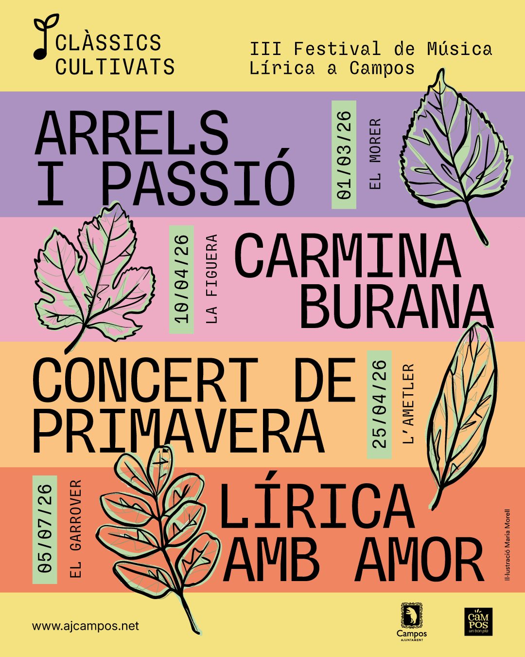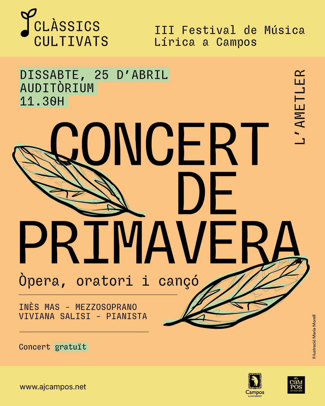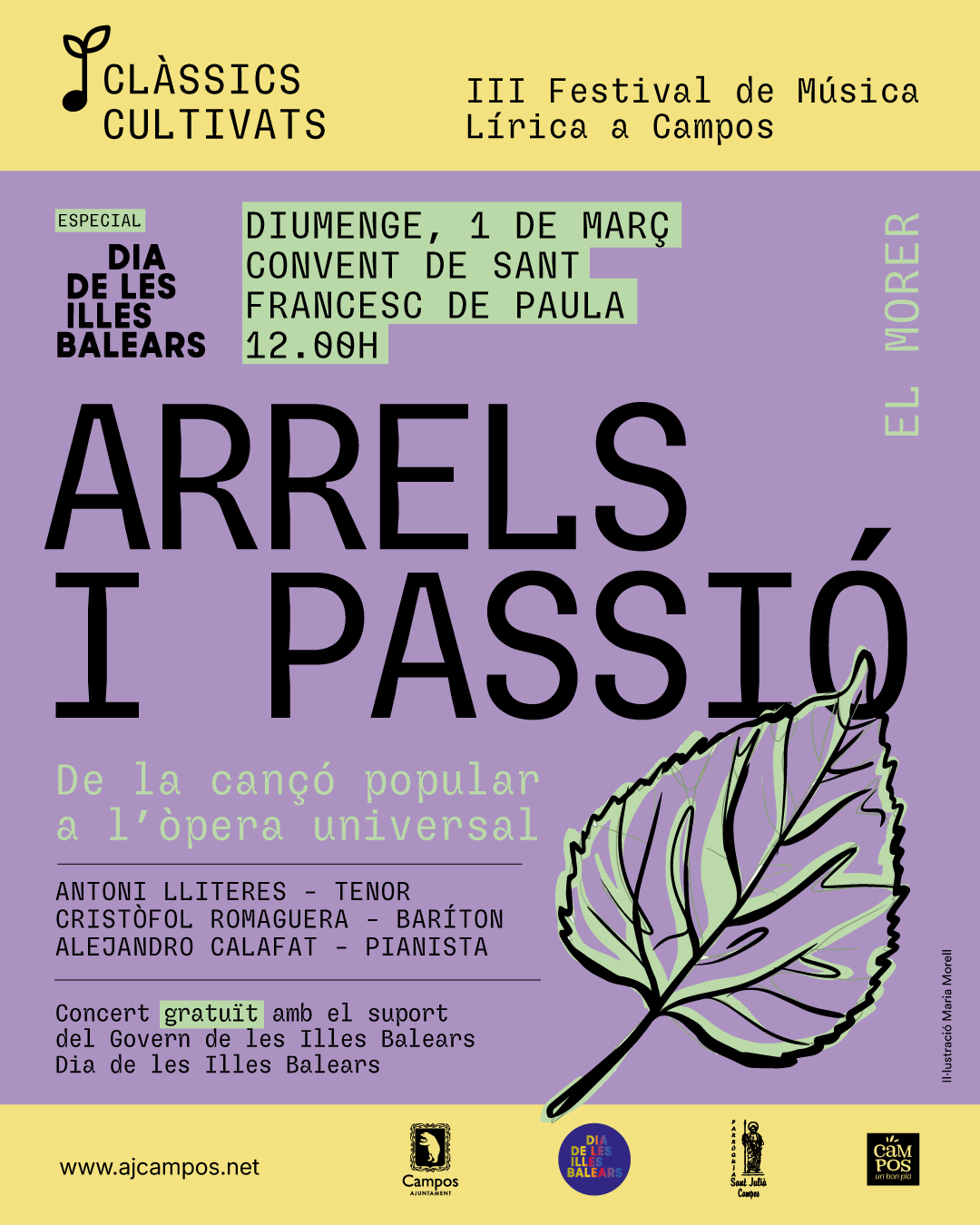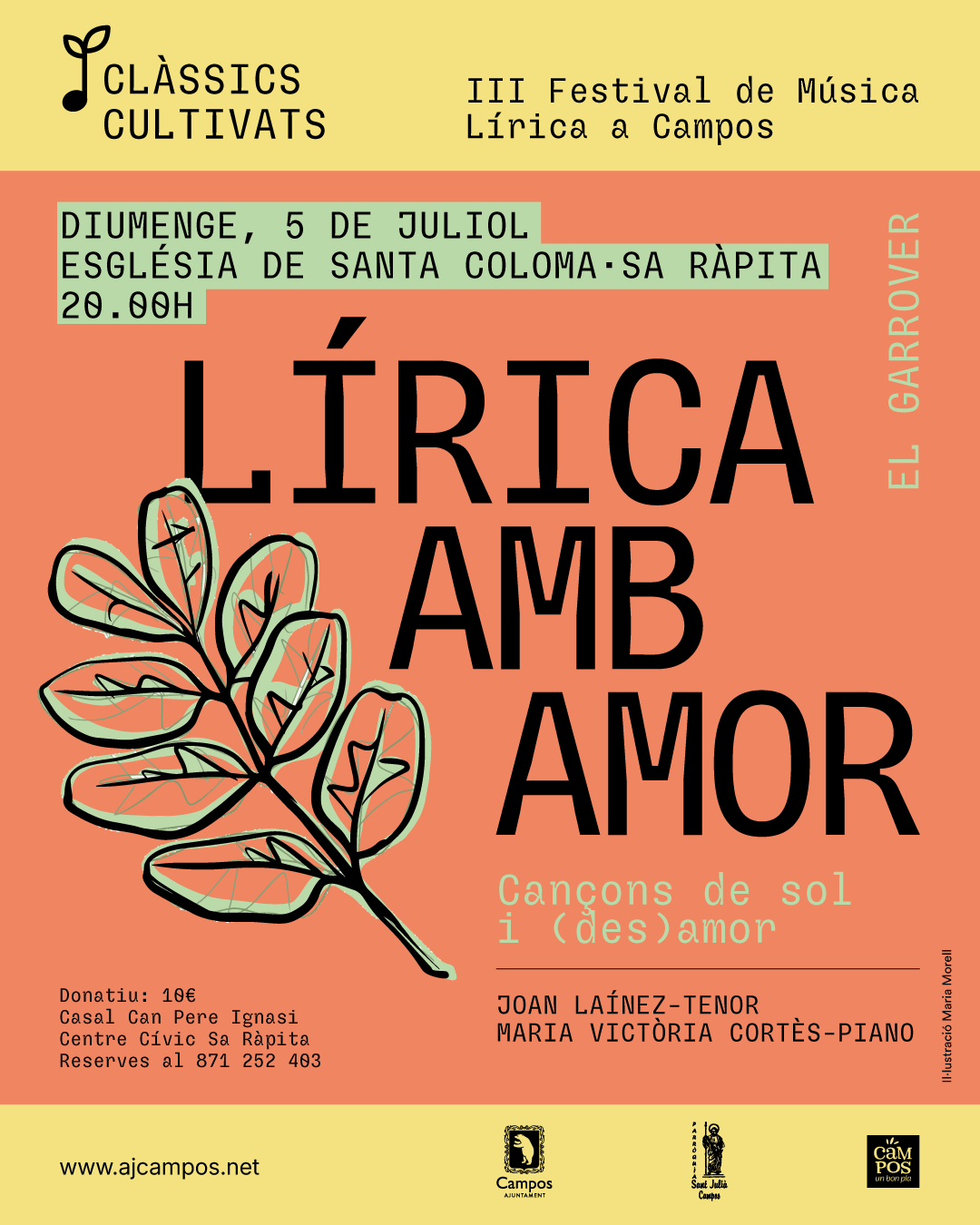 Tornen els concerts “Clàssics Cultivats” amb el III Festival de Música Lírica a Campos que s’inspira en el cultiu d'arbres com el morer, la figuera, l'ametler, la figuera i el garrover que descriu l’historiador Talladas a la seva obra “Història de Campos”. En aquesta edició comptam amb quatre concerts d’excel·lència musical amb segell mallorquí i campaner.
